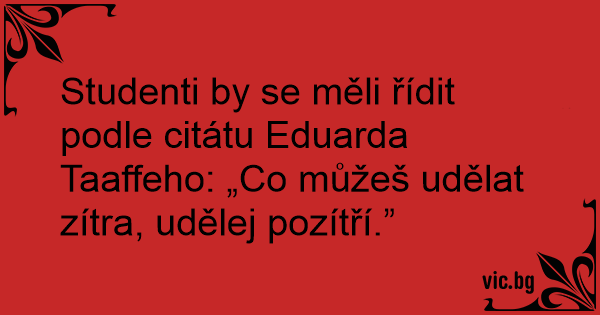 Studenti by se měli řídit podle citátu Eduarda Taaffeho: „Co můžeš udělat zítra, udělej pozítří.”