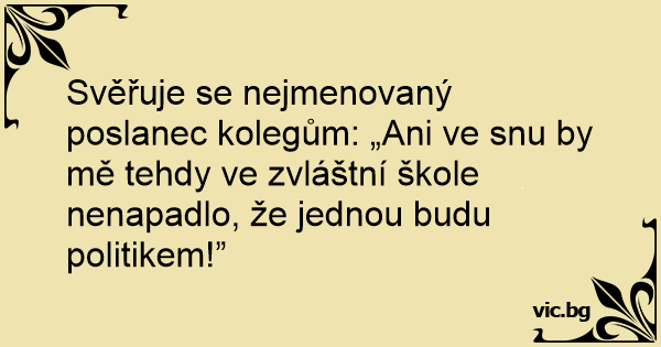 Svěřuje se nejmenovaný poslanec kolegům: „Ani ve snu by mě tehdy ve zvláštní škole nenapadlo, že jednou budu politikem!”