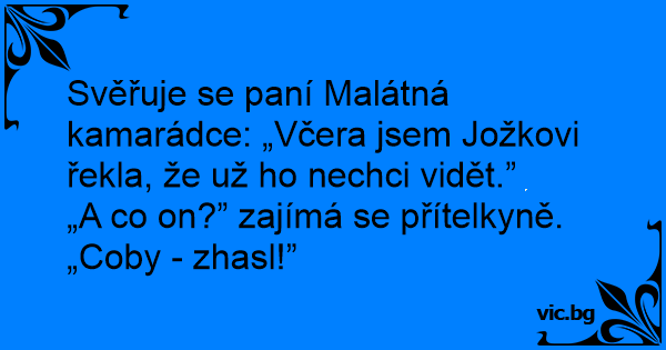 Svěřuje se paní Malátná kamarádce: „Včera jsem Jožkovi řekla, že už hо nechci vidět.”