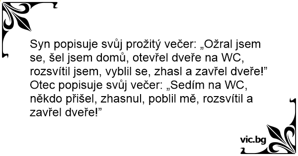 Syn popisuje svůj prožitý večer: „Ožral jsem se, šel jsem domů, otevřel dveře na WC, rozsvítil jsem, vyblil se, zhasl a zavřel dveře!”