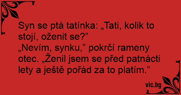 „Nevím, synku,” pokrčí rameny otec. „Ženil jsem se před patnácti lety a ještě pořád za to platím.”