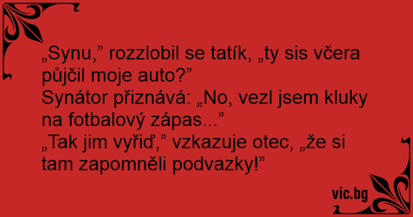 „Tak jim vyřiď,” vzkazuje otec, „že si tam zapomněli podvazky!”