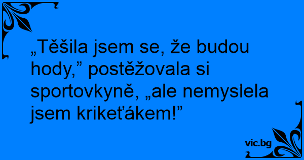 „Těšila jsem se, že budou hody,” postěžovala si sportovkyně, „ale nemyslela jsem krikeťákem!”