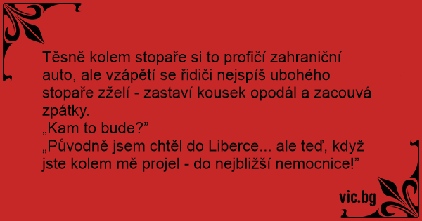 „Původně jsem chtěl do Liberce... ale teď, když jste kolem mě projel - do nejbližší nemocnice!”