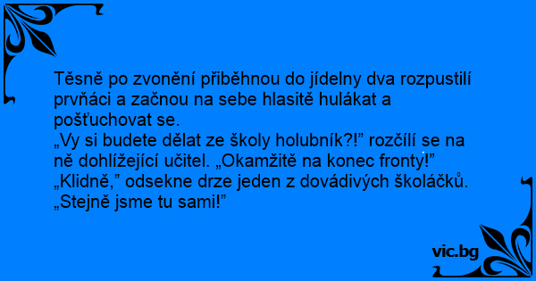 „Vy si budete dělat ze školy holubník?!” rozčílí se na ně dohlížející učitel. „Okamžitě na konec fronty!”