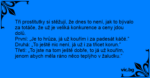 Druhá: „To ještě nic není, já už i za třicet korun.”