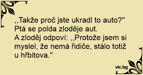 A zloděj odpoví: ,,Protože jsem si myslel, že nemá řidiče, stálo totiž u hřbitova.''