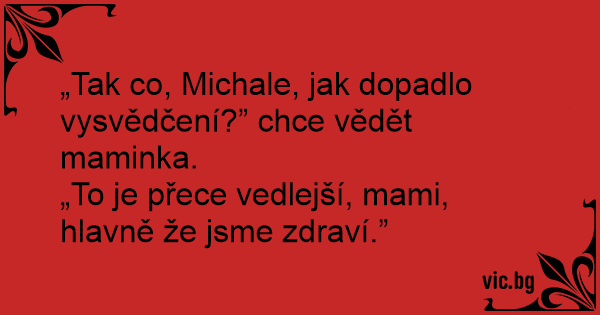„Tak co, Michale, jak dopadlo vysvědčení?” chce vědět maminka.