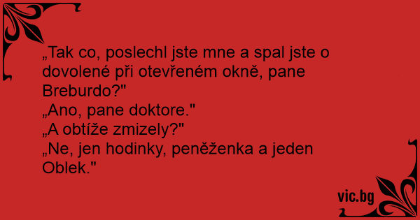 „Tak co, poslechl jste mne a spal jste o dovolené při otevřeném okně, pane Breburdo?"