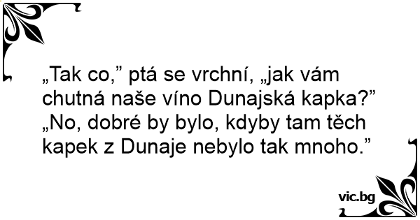 „Tak co,” ptá se vrchní, „jak vám chutná naše víno Dunajská kapka?”
