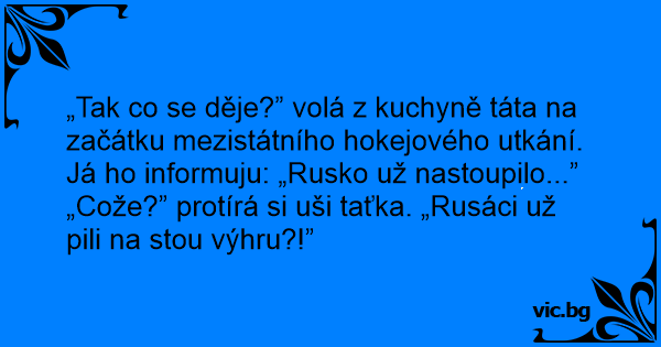 „Cože?” protírá si uši taťka. „Rusáci už pili na stou výhru?!”