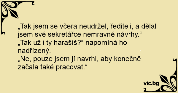 „Tak jsem se včera neudržel, řediteli, a dělal jsem své sekretářce nemravné návrhy.“
