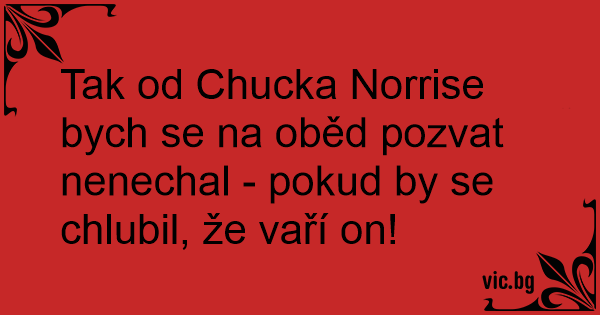 Tak od Chucka Norrise bych se na oběd pozvat nenechal - pokud by se chlubil, že vaří on!