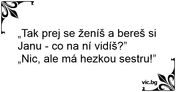 „Tak prej se ženíš a bereš si Janu - co na ní vidíš?”