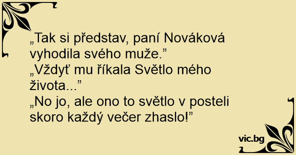 „No jo, ale ono to světlo v posteli skoro každý večer zhaslo!”