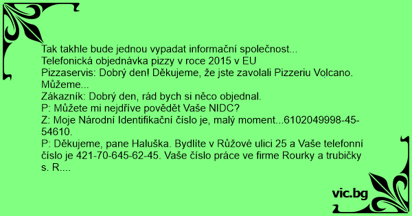 Telefonická objednávka pizzy v roce 2015 v EU