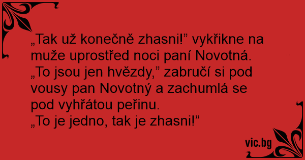 „Tak už konečně zhasni!” vykřikne na muže uprostřed noci paní Novotná.