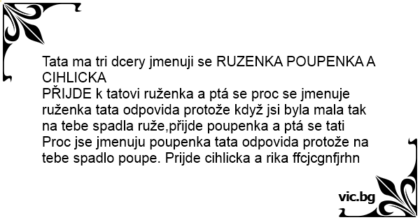 Tata ma tri dcery jmenuji se RUZENKA POUPENKA A CIHLICKA