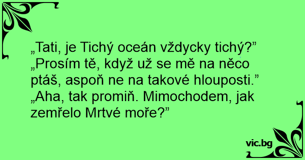 „Aha, tak promiň. Mimochodem, jak zemřelo Mrtvé moře?”