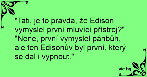 "Nene, první vymyslel pánbůh, ale ten Edisonův byl první, který se dal i vypnout."