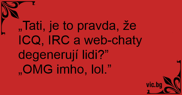 „Tati, je to pravda, že ICQ, IRC a web-chaty degenerují lidi?”