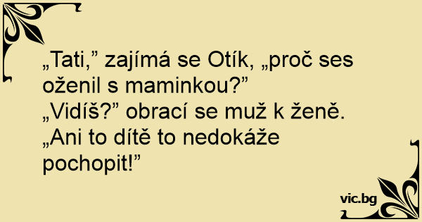 „Tati,” zajímá se Otík, „proč ses oženil s maminkou?”