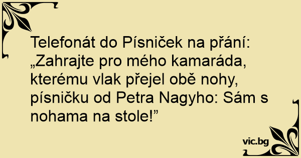 Telefonát do Písniček na přání: „Zahrajte pro mého kamaráda, kterému vlak přejel obě nohy, písničku od Petra Nagyho: Sám s nohama na stole!”