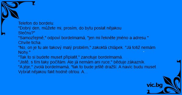 "A jéje," zvolá bordelmamá, "tak to bude ještě dražší. A navíc budu muset