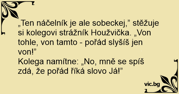 Kolega namítne: „No, mně se spíš zdá, že pořád říká slovo Já!”