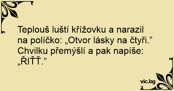 Teplouš luští křížovku a narazil na políčko: „Otvor lásky na čtyři.”