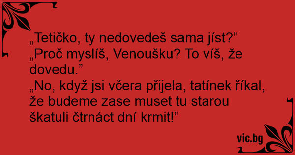 „No, když jsi včera přijela, tatínek říkal, že budeme zase muset tu starou škatuli čtrnáct dní krmit!”