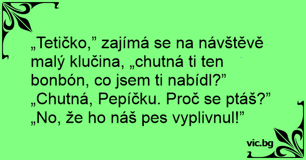 „Tetičko,” zajímá se na návštěvě malý klučina, „chutná ti ten bonbón, co jsem ti nabídl?”
