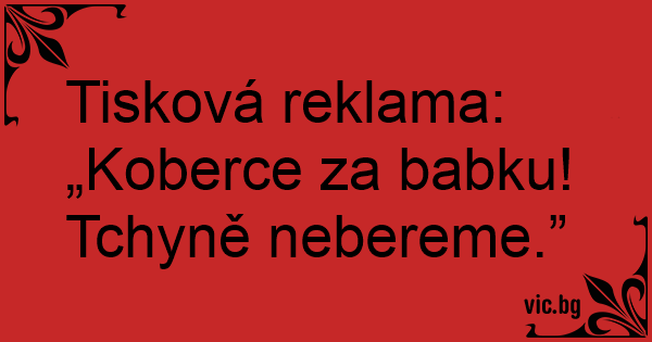 Tisková reklama: „Koberce za babku! Tchyně nebereme.”