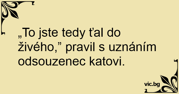 „To jste tedy ťal do živého,” pravil s uznáním odsouzenec katovi.