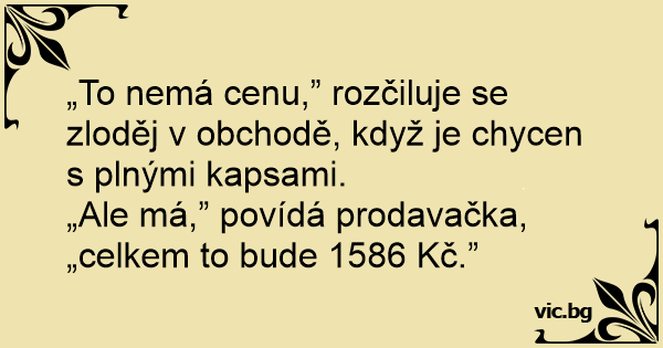 „Ale má,” povídá prodavačka, „celkem to bude 1586 Kč.”