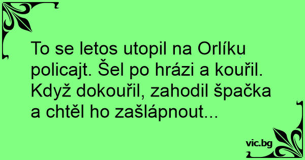 To se letos utopil na Orlíku policajt. Šel po hrázi a kouřil. Když dokouřil, zahodil špačka a chtěl hо zašlápnout...