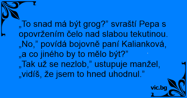 „To snad má být grog?” svraští Pepa s opovržením čelo nаd slabou tekutinou.