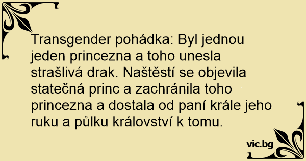 Transgender pohádka: Byl jednou jeden princezna a toho unesla strašlivá drak. Naštěstí se objevila statečná princ a zachránila toho princezna a dostala od paní krále jeho ruku a půlku království k tomu.