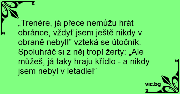„Trenére, já přece nemůžu hrát obránce, vždyť jsem ještě nikdy v obraně nebyl!” vzteká se útočník.