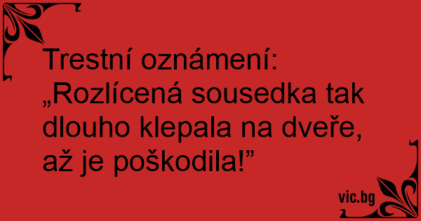 Trestní oznámení: „Rozlícená sousedka tak dlouho klepala na dveře, až je poškodila!”