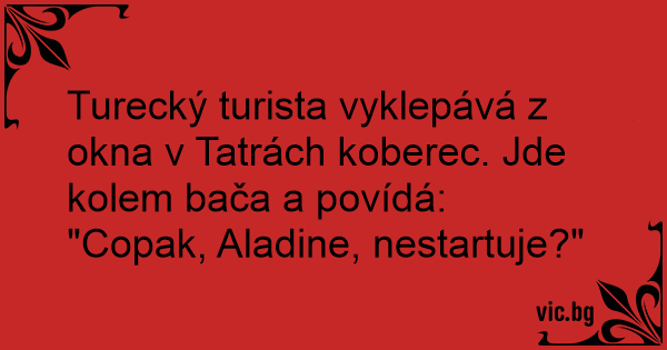Turecký turista vyklepává z okna v Tatrách koberec. Jde kolem bača a povídá: