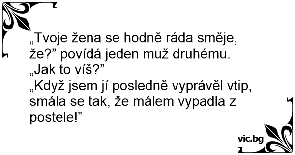 „Když jsem jí posledně vyprávěl vtip, smála se tak, že málem vypadla z postele!”