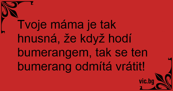 Tvoje máma je tak hnusná, že když hodí bumerangem, tak se ten bumerang odmítá vrátit!