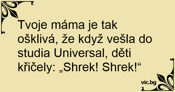 Tvoje máma je tak ošklivá, že když vešla do studia Universal, děti křičely: „Shrek! Shrek!“