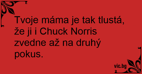 Tvoje máma je tak tlustá, že ji i Chuck Norris zvedne až na druhý pokus.