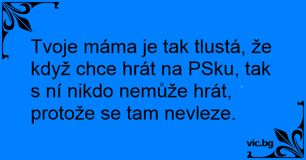 Tvoje máma je tak tlustá, že když chce hrát na PSku, tak s ní nikdo nemůže hrát, protože se tam nevleze.