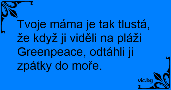 Tvoje máma je tak tlustá, že když ji viděli na pláži Greenpeace, odtáhli ji zpátky do moře.