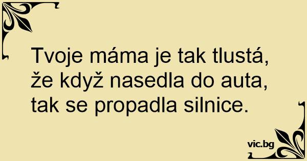 Tvoje máma je tak tlustá, že když nasedla do auta, tak se propadla silnice.