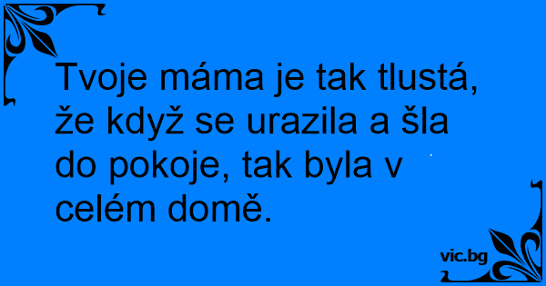 Tvoje máma je tak tlustá, že když se urazila a šla do pokoje, tak byla v celém domě.