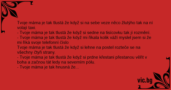 - Tvoje máma je tak tlustá že když si sedne na tisícovku tak jí rozmění.